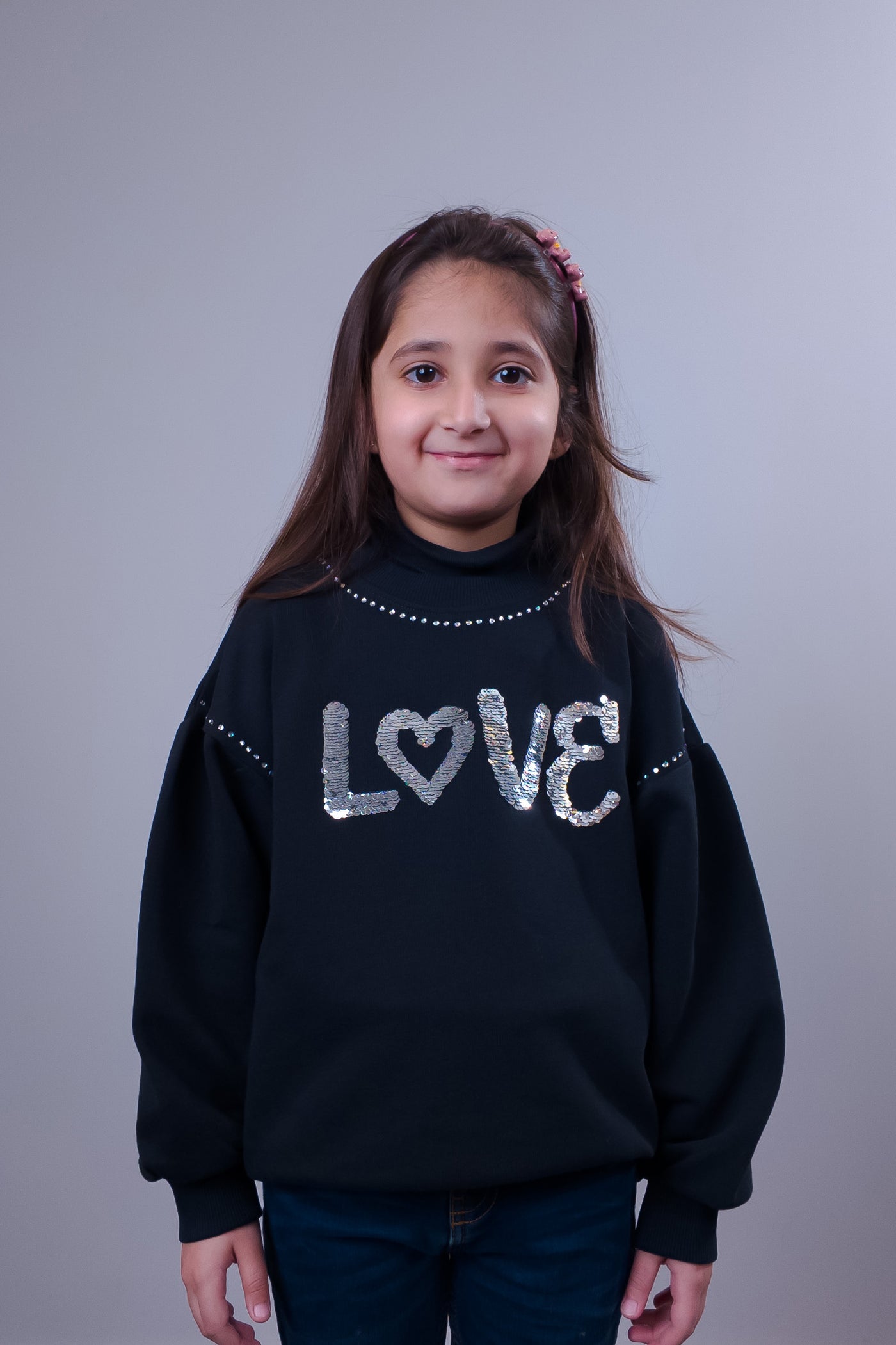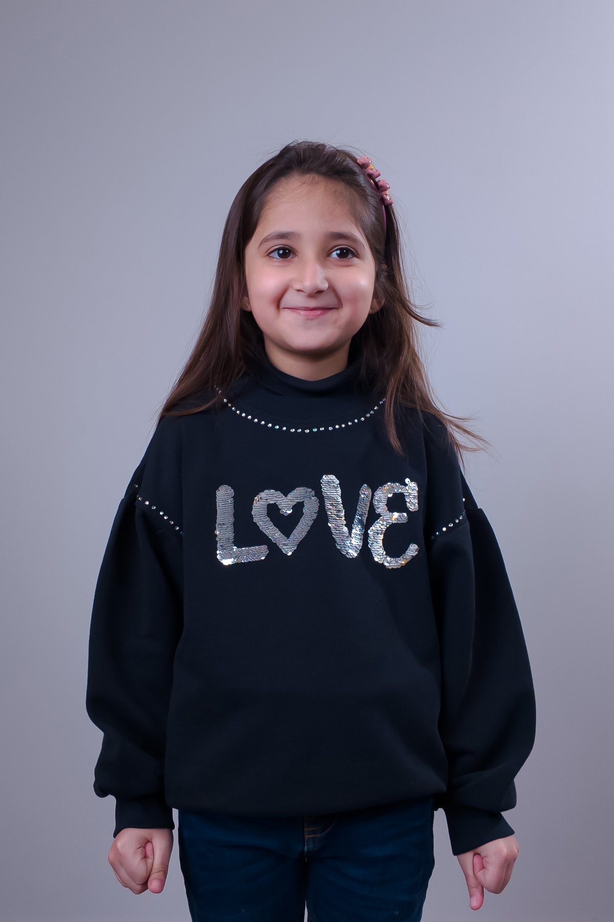 Add a touch of sparkle to your little one's wardrobe with our Girls’ Black Sequin "LOVE" Sweatshirt! Designed for both comfort and style, this sweatshirt features soft, high-quality fabric that keeps your child warm and cozy while looking effortlessly chic. The eye-catching sequin "LOVE" design and delicate embellishments make it a perfect pick for casual outings, special occasions, or everyday wear.