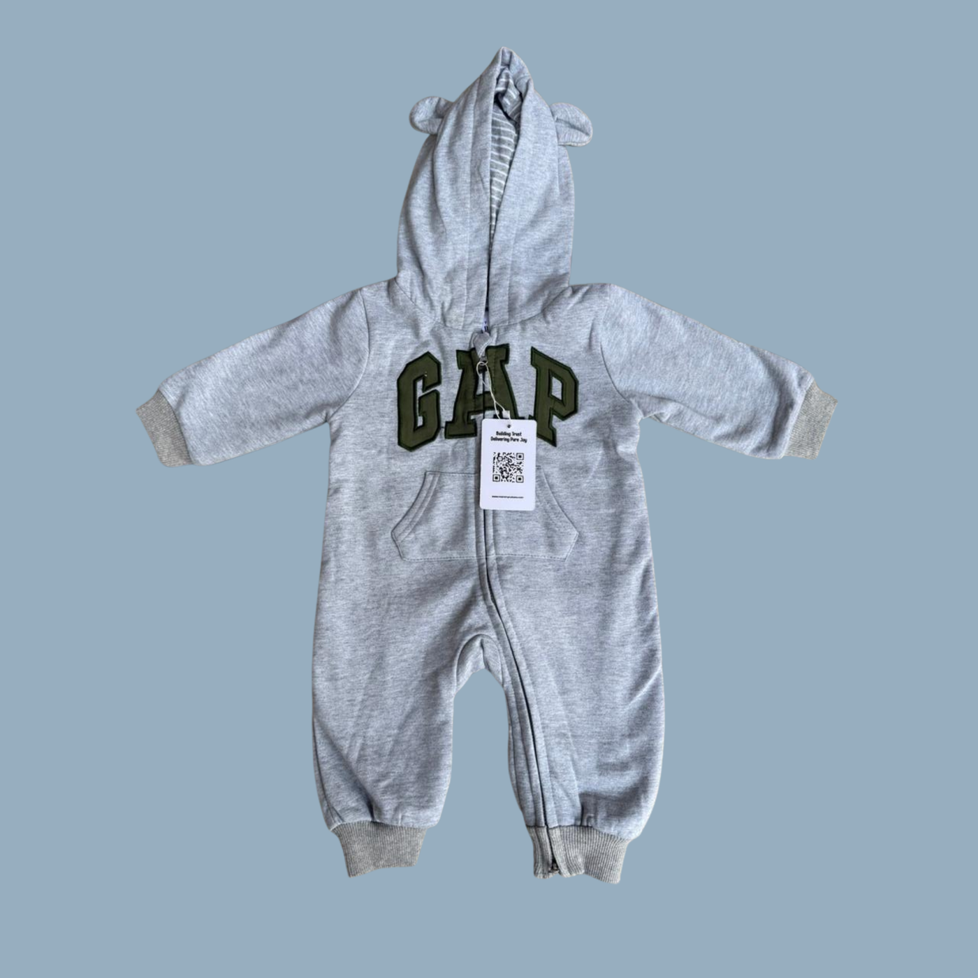 GAP Original Baby Jumpsuit – unisex,Gray Bear Hoodie with Green Logo | Mommy Minors.