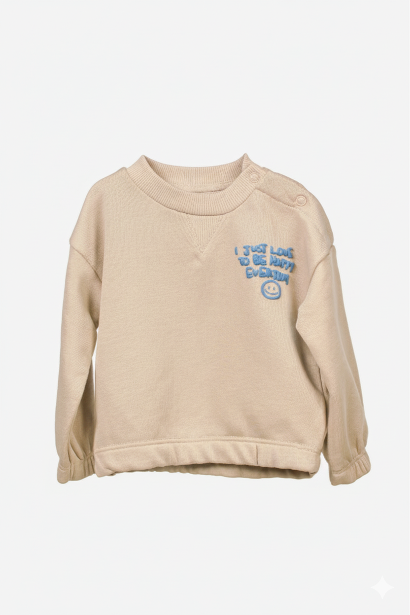 Keep your little one warm and comfy with this adorable Baby Sweatshirt & Jogger Set! Made from soft and breathable cotton, this outfit is gentle on delicate skin and perfect for everyday wear. Featuring a cute "I Just Love to Be Happy Everyday" embroidered design and available in neutral beige and soft blue, this set is both stylish and practical.