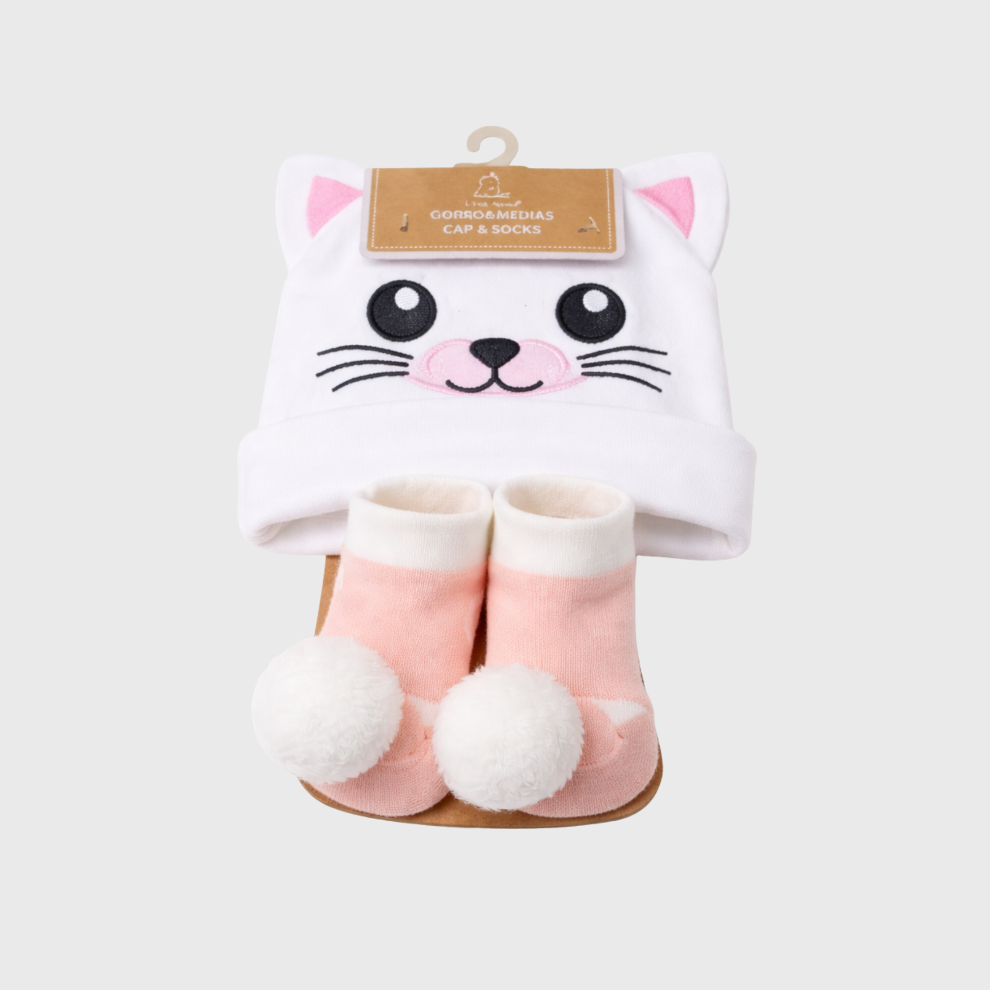 Baby Cute Cat Cap & Pom-Pom Socks Set