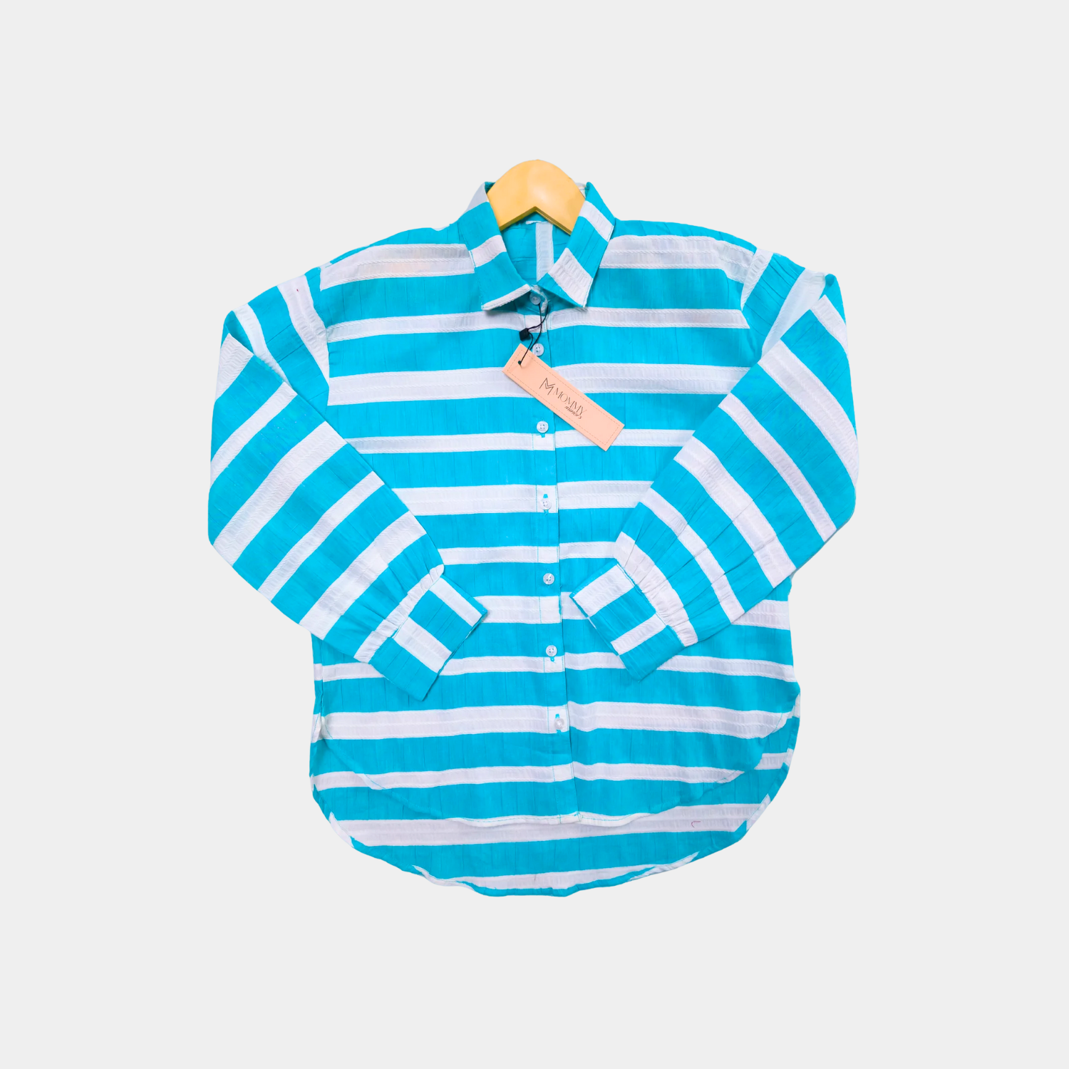 Keep your little one cool and stylish with this turquoise-striped long-sleeve shirt, perfect for any casual or coastal occasion.