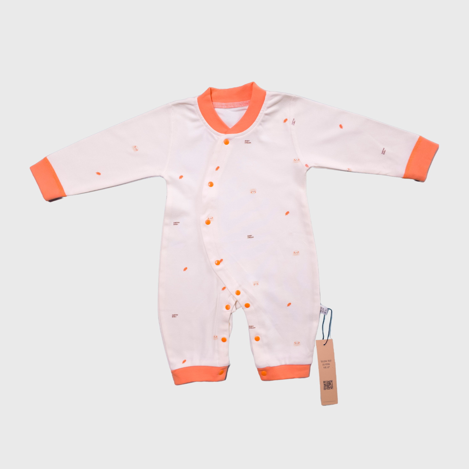 Beige & Orange Soft Cotton Baby Romper